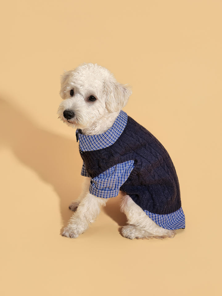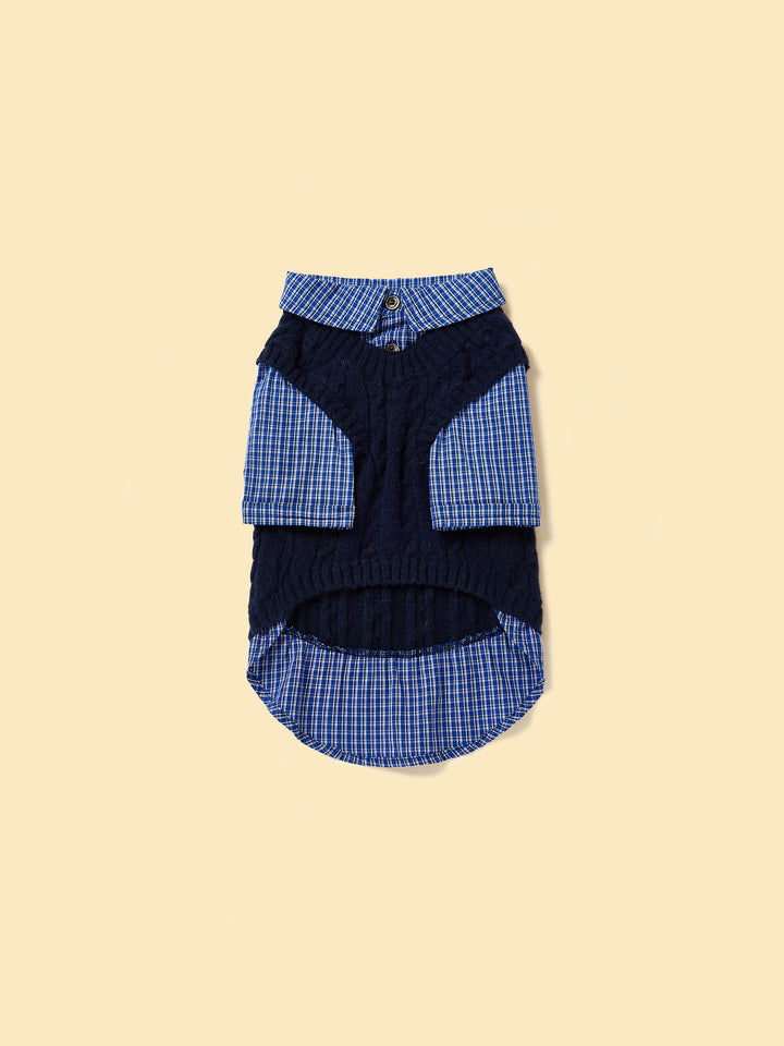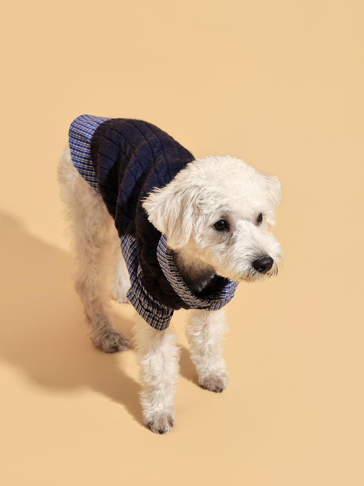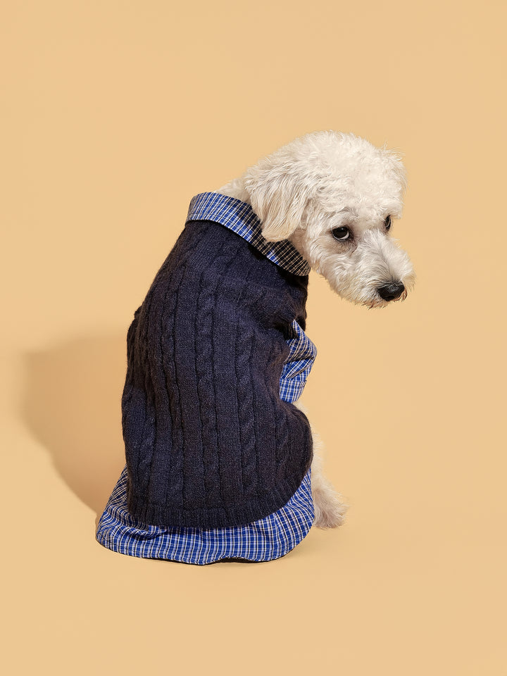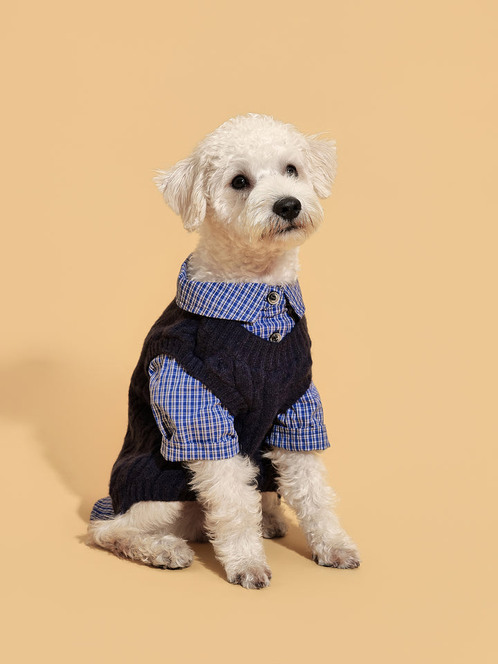 SoHo pups set the fashion standard—and this is their two-in-one essential. Part sweater, part shirt, the Navy Checked Sweater Shirt nails that downtown layered look without the bulk. Classic navy checks give it a timeless edge, while the soft knit keeps your pup cozy through every city stroll.
